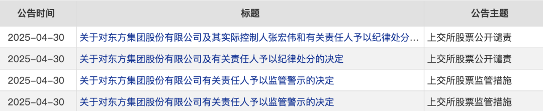 带着上述一连串的监管处罚,*ST东方也于4月30日正式摘牌,从A股离场。